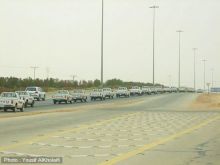 واستكمل نصف الصورة الاخر عصر هذا اليوم الاربعاء حيث انطلقت القافلة بعد تجمع لأكثر من 300 سيارة من نوع هايلوكس من مدينة عنيزة بإتجاه طريق القصيم الرياض السريع وبالتحديد نقطة تفتيش أم سدرة وكان الهدف منها توزيع التمور على القادمين من الرياض ومكه ومختلف المسافرين الذين يستخدمون هذا الطريق .